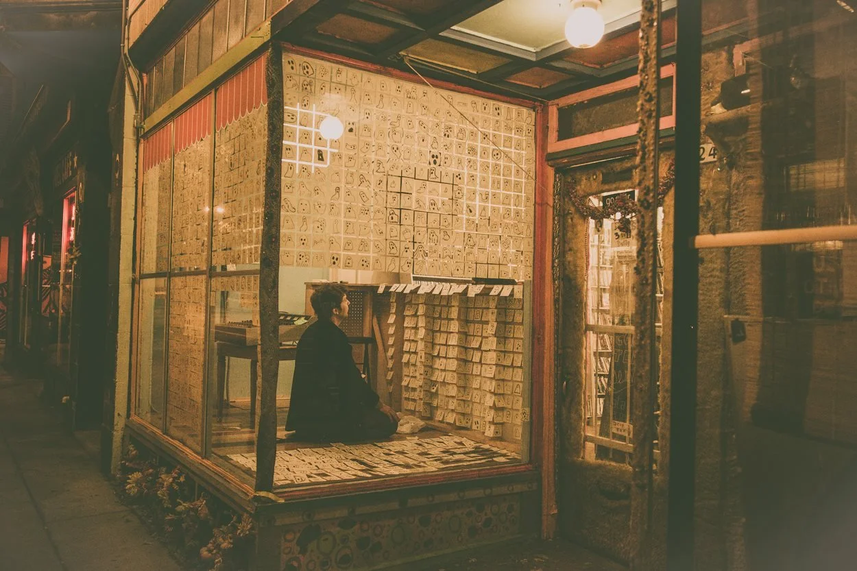 Haunting is a metaphysical concept, and so, a broad one. For my project, it's partly that colloquial sense of it, as in a haunt: a store, a shop, a bar, a restaurant, a place where one hangs out, inhabits regularly, as part of a human or social reality—as well as all the obvious thematic and cultural resonances. After days on end of ghosting in the windows of these places, sleep-deprived, you start to lose yourself, you go on a kind of auto-pilot, and become a ghost yourself, haunting the space and its neighborhood.